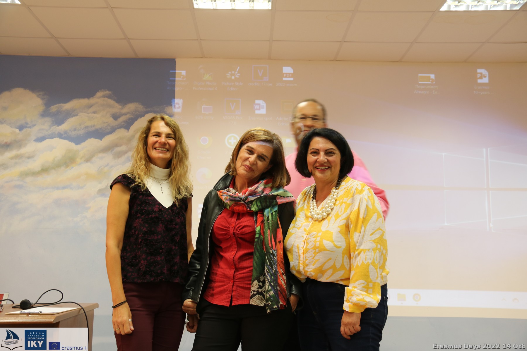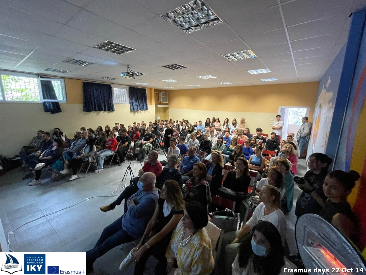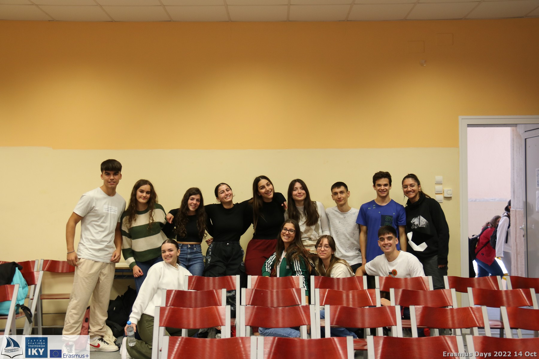 To bring back memories of last year's events, the video "Erasmus experience" which was created by Bosko Niko and Pantidi Gianni, was presented. The video which refers to all the positives this specific program has to offer to an active student. From the beginning of October until the beginning of November our high school will accommodate two students from the high school of Almagro, Maria Triguero Chacon and Helena Marillo Caminero, who courageously accepted to attend their lessons in Greek for a month, learn about our culture and live just like the teenagers here. In the event, the two students spoke up and shared with us their first impressions of the hospitality they received in our school.