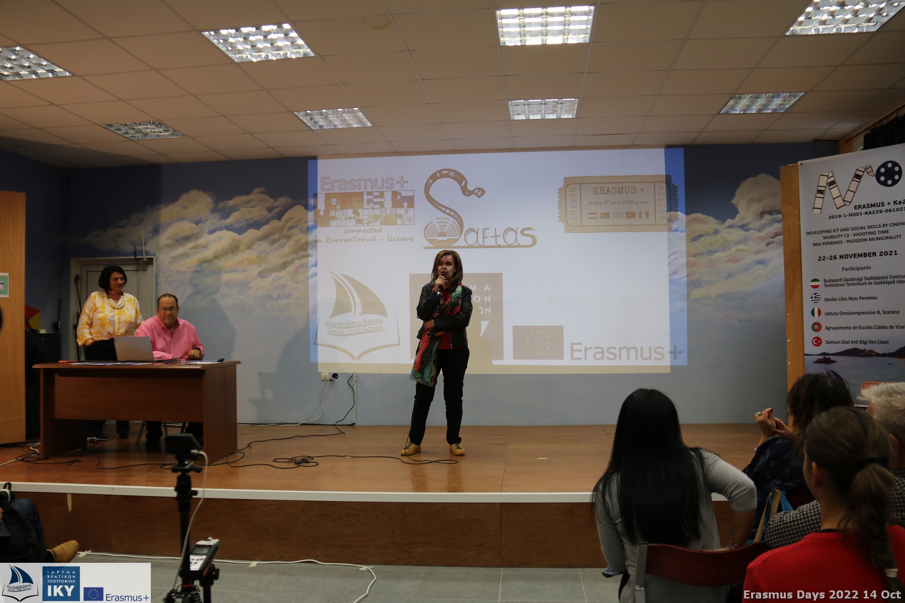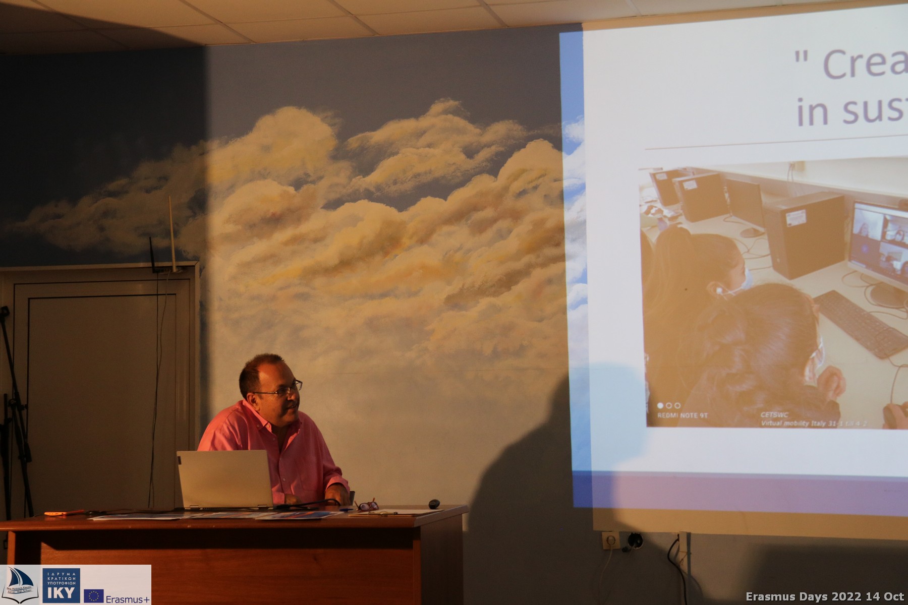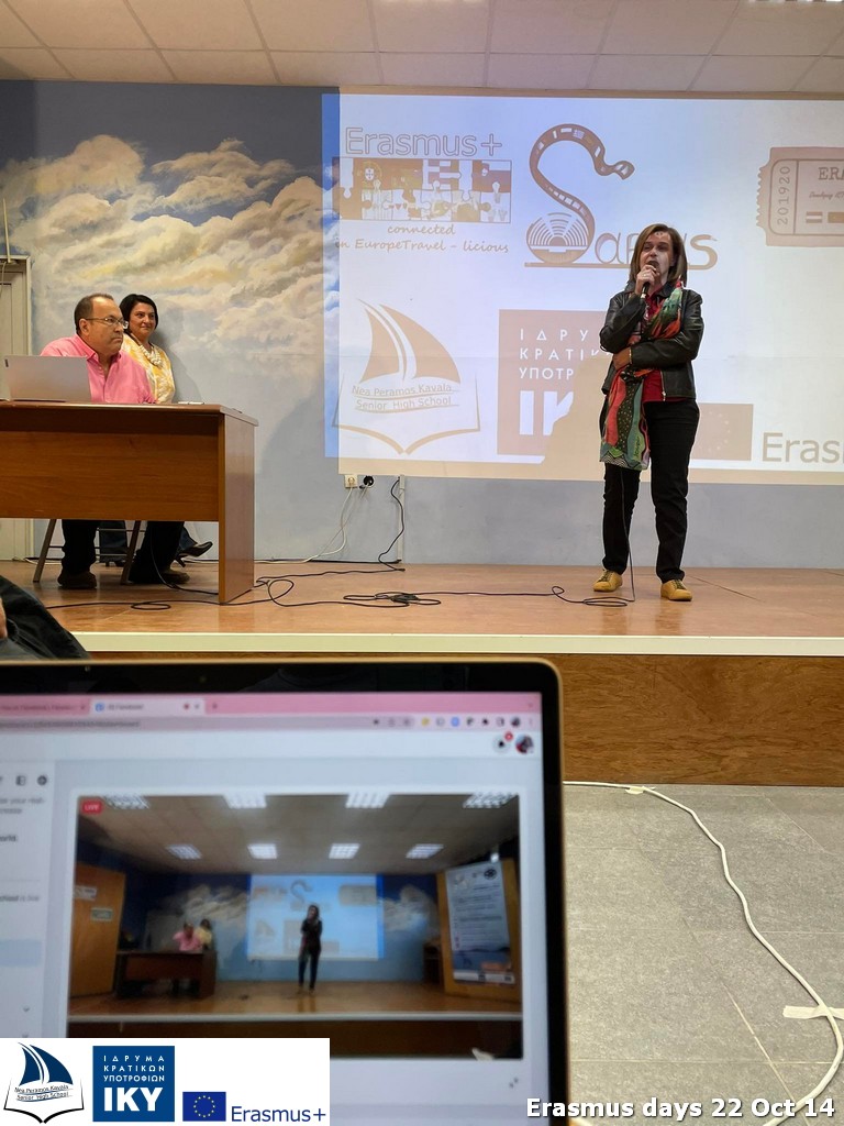 On the 14th of October 2022 our long-lasting adventure was presented in the event hall to the teachers of our school, but also to the teachers of our neighboring junior high school, as well as to the students of the first class of high school. The presentation started with a short overview of the last movement of Erasmus with the topic being "Creating employment in sustainable tourism" which was held in July of 2022 in the picturesque city of Don Quixote, Almagro, and in other places in Spain, such as Toledo and Madrid. The participants were the teachers Pigadas Vasilis, Giagmouridou Evdokia, and the students Ioannidou Christina, Strantza Faedra, Kotsi Arbiona, Eva Semaltianou, Kourtidou Efi and Kourtidis Giannis.