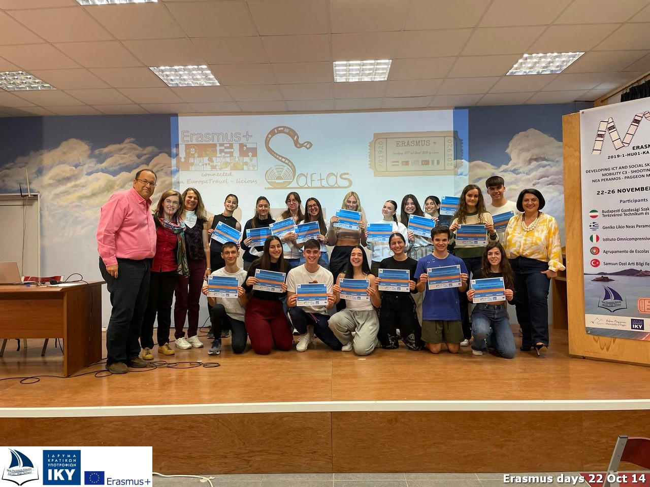 Afterwards, the Saftas program followed, with the theme being cinematography and theater. The highlight of the program was when the participants met the Greek director Costas Gavras and when in April of 2017, in France they won the first-place award for a short length movie.