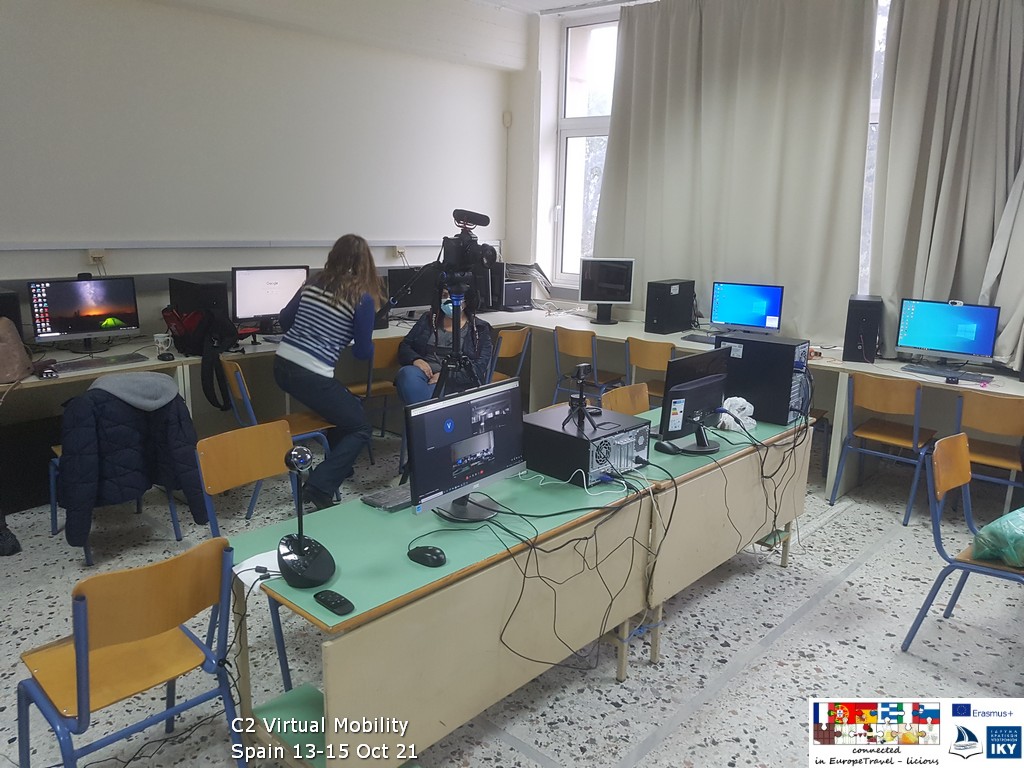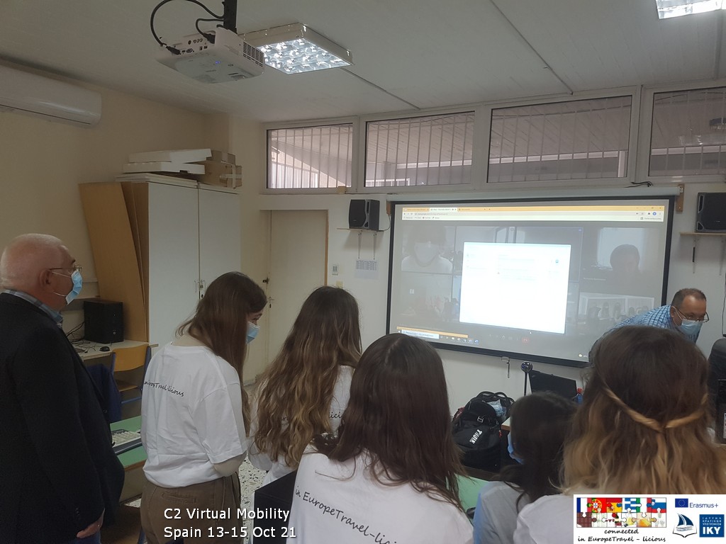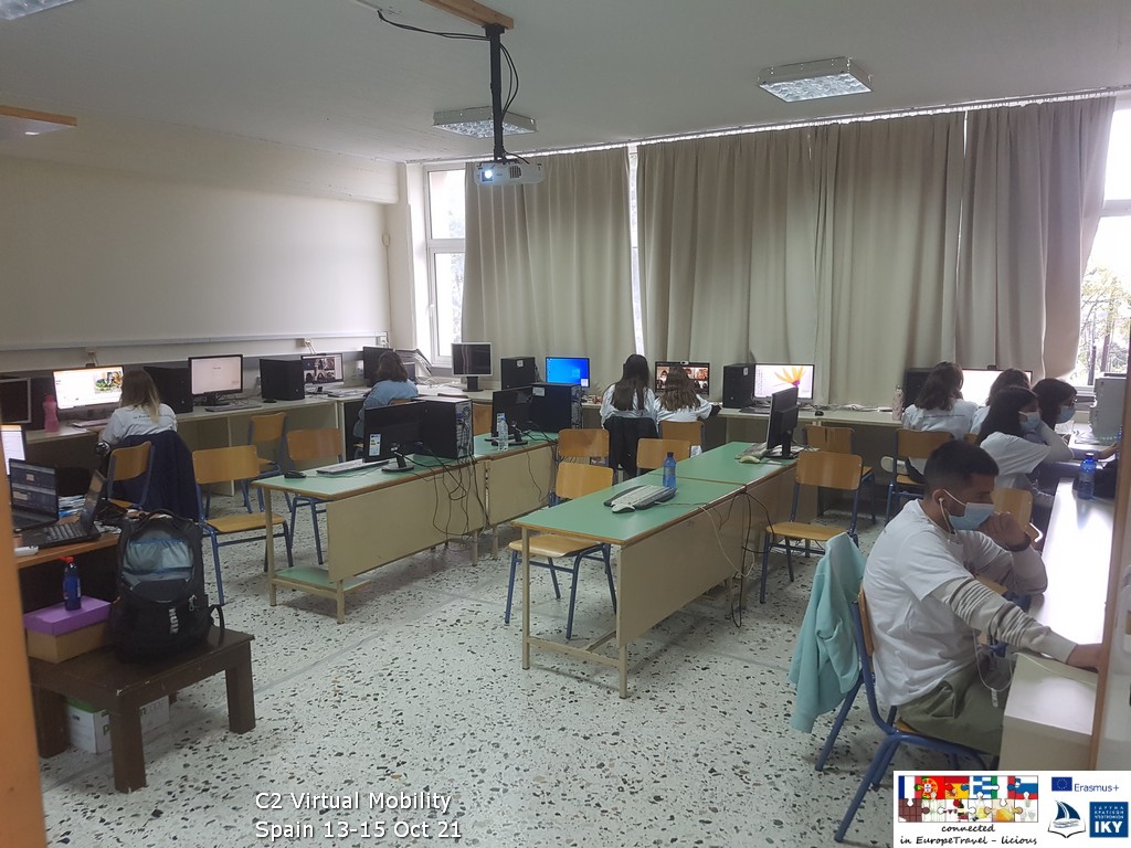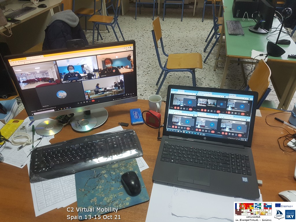 Λόγω της εμφάνισης του ιού covid και των συνεπειών που προκάλεσε, κρίθηκε αναγκαίο ορισμένες κινητικότητες του προγράμματος Erasmus+ να υλοποιηθούν εικονικά, σε διαδικτυακές συναντήσεις των έξι ευρωπαϊκών σχολείων που συμμετέχουν στο πρόγραμμα βιώσιμης ανάπτυξης αγροτουρισμού. Έτσι, στο εργαστήριο πληροφορικής του σχολείου μας λειτούργησαν έξι εικονικά δωμάτια, στα οποία εργάστηκαν έξι διαφορετικές ομάδες μαθητών, που η κάθε μια περιλάμβανε παιδιά από διαφορετικές χώρες.