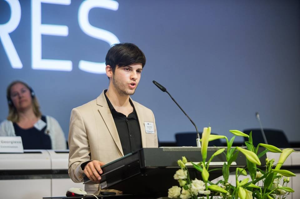 Μετά την απονομή των βραβείων, ο Θανάσης ήταν ένας από τους τέσσερις νικητές που εκφώνησαν λόγο προς το ακροατήριο των συμμαθητών, γονιών, καθηγητών, υπαλλήλων της Ευρωπαϊκής Επιτροπής και άλλων προσκεκλημένων στην τελετή. Ο Θανάσης εκφώνησε το λόγο (όπως είχε ζητηθεί και από τους διοργανωτές) στα ελληνικά. Οι διερμηνείς, βέβαια, τον απέδιδαν ταυτόχρονα στις υπόλοιπες 23 γλώσσες της Ευρωπαϊκής Ένωσης για τις ανάγκες του Πολυγλωσσικού ακροατηρίου.