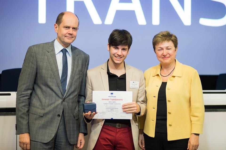 Η βράβευση πραγματοποιήθηκε την Πέμπτη 16-4-15 στο κτίριο Charlemagne της Ευρωπαϊκής Επιτροπής σε μια ιδιαίτερα όμορφη τελετή που διοργάνωσε η ομάδα των Juvenes Translatores. Τα βραβεία στους 28 μαθητές, έναν από κάθε χώρα της Ευρωπαϊκής Ένωσης, απένειμε η αντιπρόεδρος της Ευρωπαϊκής Επιτροπής αρμόδια για θέματα Προϋπολογισμού και Ανθρώπινου Δυναμικού κ. Κρισταλίνα Γκεοργκίεβα. Μάλιστα, στη διάρκεια του λόγου της πριν τη βράβευση, η Επίτροπος ασχολήθηκε ιδιαιτέρως με το Θανάση ο οποίος και απάντησε σε ερώτησή της σχετικά με τις δυσκολίες του κειμένου που μετέφρασε.