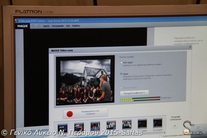 9 Δεκεμβρίου 2015 και το σχολείο μας πηγαίνει ημερήσια εκδρομή στη Θεσσαλονίκη. Φυσικά τέτοιες ευκαιρίες δε χάνονται και όλη η ομάδα που συμμετέχει στο Saftas κατηφορίζει προς το Λιμάνι της πόλης. Εκεί σε μια παλιά διατηρητέα αποθήκη στεγάζεται από το 1997 ένα από τα πιο ενδιαφέροντα μουσεία, το Μουσείο Κινηματογράφου της Θεσσαλονίκης. Στην είσοδο μας υποδέχονται δύο εξαιρετικές μουσειοπαιδαγωγοί, η κ. Δελιδάκη Ειρήνη και η κ. Κολώνη Μαρία. Οι μαθητές μας θα χωριστούν σε δύο ομάδες και θα παρακολουθήσουν δύο διαφορετικά εκπαιδευτικά προγράμματα.