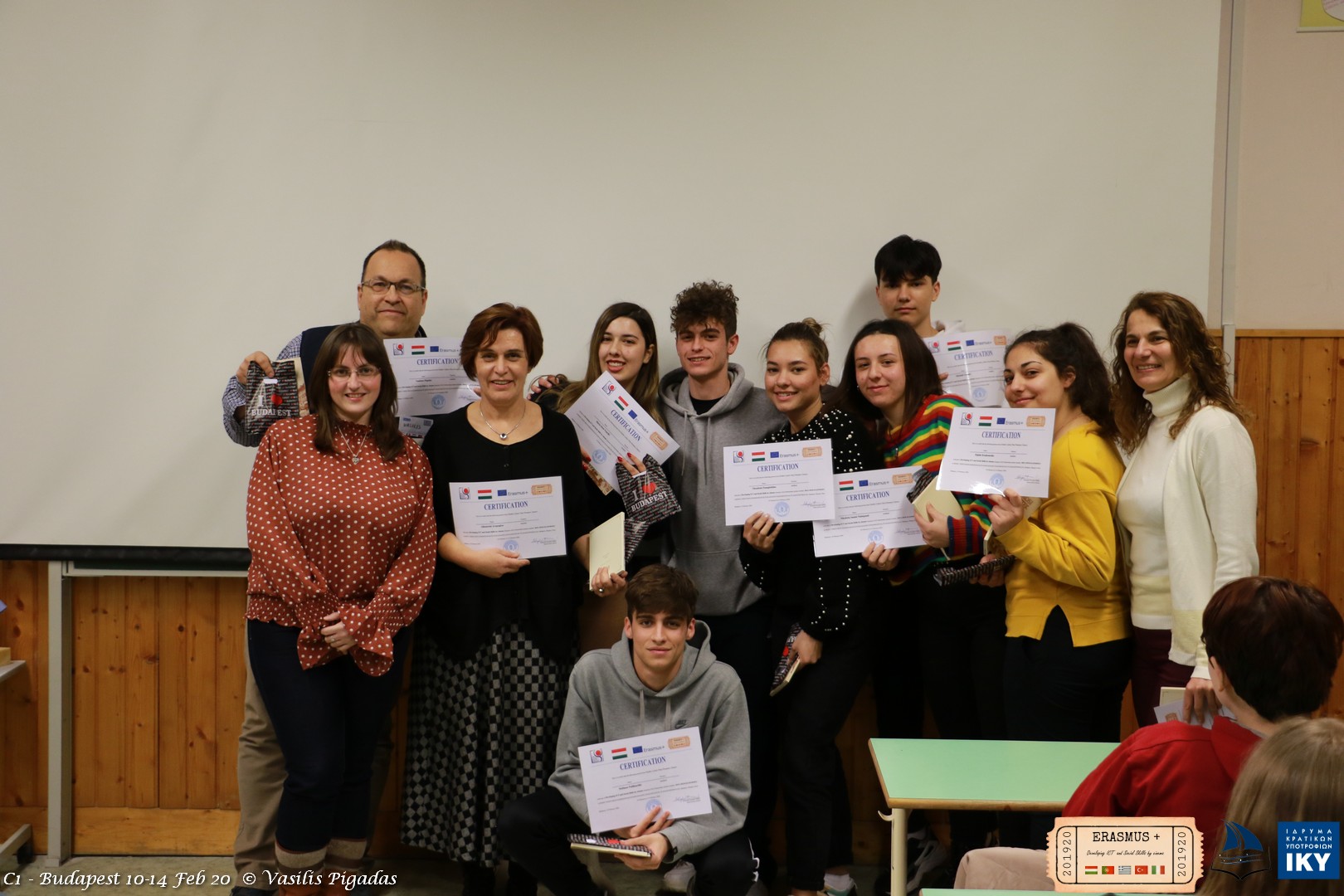 Την εβδομάδα που μας πέρασε, 10-17 Φεβρουαρίου 2020, πραγματοποιήθηκε η πρώτη συνάντηση του προγράμματος στη Βουδαπέστη, Εκεί, η ομάδα του ΓΕΛ Νέας Περάμου και οι ευρωπαίοι εταίροι μας προγραμματίσαμε τις δράσεις της σύμπραξης κατά τη διετή διάρκειά της, επιλέξαμε το λογότυπο του προγράμματος, παρουσιάσαμε τα σχολεία μας και τα εκπαιδευτικά συστήματα των χωρών μας και συμμετείχαμε σε κινηματογραφικά εργαστήρια. Σε αυτά, οι μαθητές πήραν μια δική τους πρωτότυπη ιδέα, έφτιαξαν τη δική τους ιστορία (storyline) και επιχείρησαν να εξελίξουν την ιστορία τους σε κινηματογραφικό σενάριο (script) και εικονογραφημένο σενάριο (storyboard). Επίσης, παρακολούθησαν την εξαιρετικά ενδιαφέρουσα ταινία μικρού μήκους Mindenki (2017) του Ούγγρου σκηνοθέτη Deak Kristof. Στο εργαστήρι που ακολούθησε, οι μαθητές είδαν πως τα όσα έμαθαν σχετικά με τους τρόπους λήψης σκηνών, τα πλάνα και την εστίαση, χρησιμοποιούνται δημιουργικά στην πράξη από το σκηνοθέτη της ταινίας.