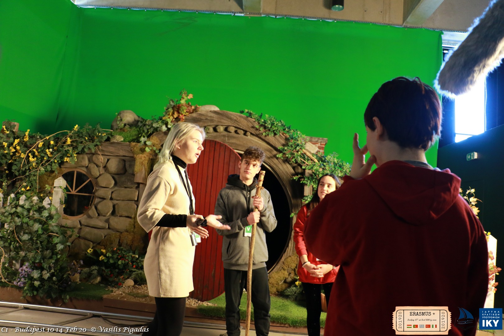 Έπειτα από το θεωρητικό μέρος των εργαστηρίων, ακολούθησε κινηματογράφηση με τη συμμετοχή των μαθητών σε στούντιο σχολείου της Βουδαπέστης και επίσκεψη στο επαγγελματικό στούντιο Korda Filmpark and Studios. Στο δεύτερο πραγματοποιήθηκε περιήγηση σε εξωτερικά σκηνικά (σκηνικό Νέας Υόρκης, Μεσαιωνικού χωριού), όπου γυρίστηκαν γνωστές σειρές/ταινίες (π.χ. The Borgias, Gemini Man, The Last Kingdom) αλλά και ξενάγηση στο εσωτερικό του στούντιο, όπου έγινε ενημέρωση για τα κινηματογραφικά στάδια pre-production, production και post-production. Η πιο όμορφη στιγμή ήταν όταν μαθητές, υποδυόμενοι κινηματογραφικούς συντελεστές γύρισαν μίνι κινηματογραφική σκηνή. Αυτή ήταν η περιήγησή μας στην υπέροχη τέχνη του σινεμά που μπορεί να λέει μεγάλες αλήθειες μέσα από την τέχνη της εξαπάτησης της εικόνας.