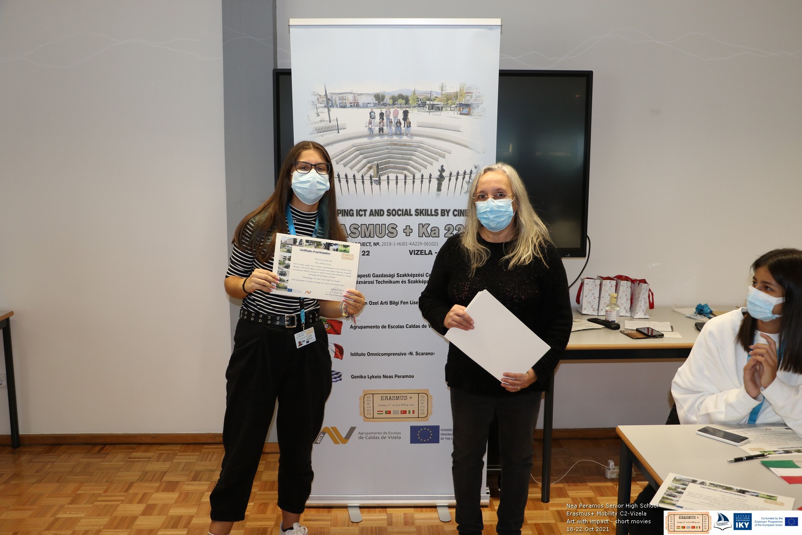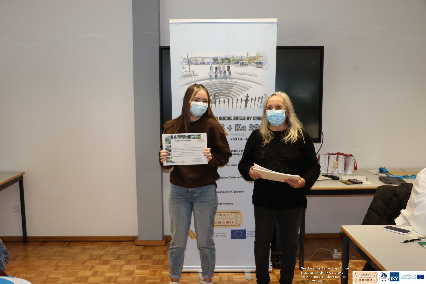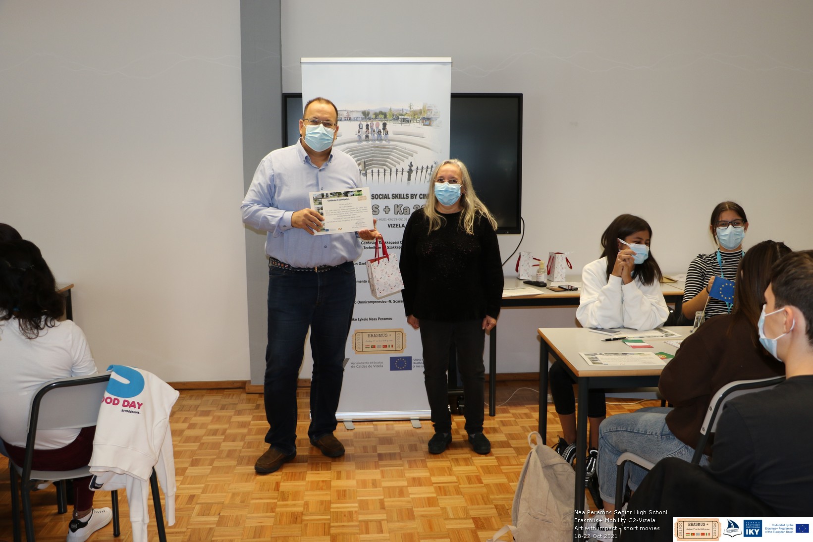 Το ένα από τα δύο προγράματα 2019-1-HU01-KA229-061021 έχει στόχο να αναπτύξει τις ψηφιακές και κοινωνικές δεξιότητες στα παιδιά με την ενασχόλησή τους με τον κινηματογράφο (" Developing ICT and social skills by cinema"). Στα πλαίσια αυτού του προγράμματος πραγματοποιήθηκε η πρώτη «φυσική» κινητικότητα εν μέσω πανδημίας. Οι καθηγητές κ. Πηγαδάς Βασίλειος, καθηγητής πληροφορικής και η κ. Γιαγμουρίδου Ευδοκία, φιλόλογος και οι μαθήτριες Στράντζα Φαίδρα, Μουρατίδου Καρμέλα, Κότσι Αρμπιόνα, Χύσα Ελεάνα και Ιωαννίδου Χριστίνα Νεκταρία μετακινήθηκαν στη πόλη Βιζέλα της Πορτογαλίας ύστερα από πρόσκληση του σχολείου Agrupamento des Escolas Caldas de Vizela στις 17-24/ 10/2021.