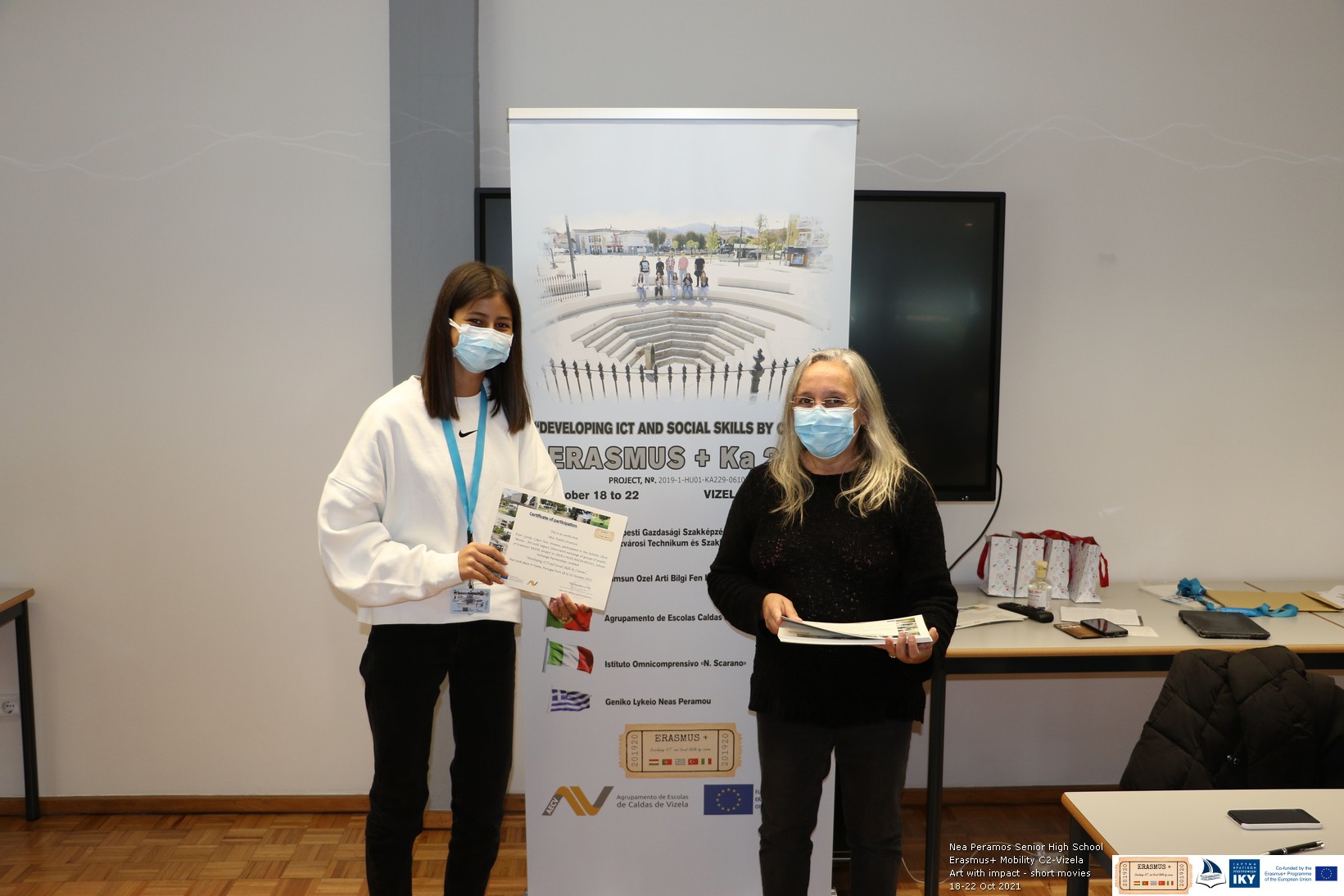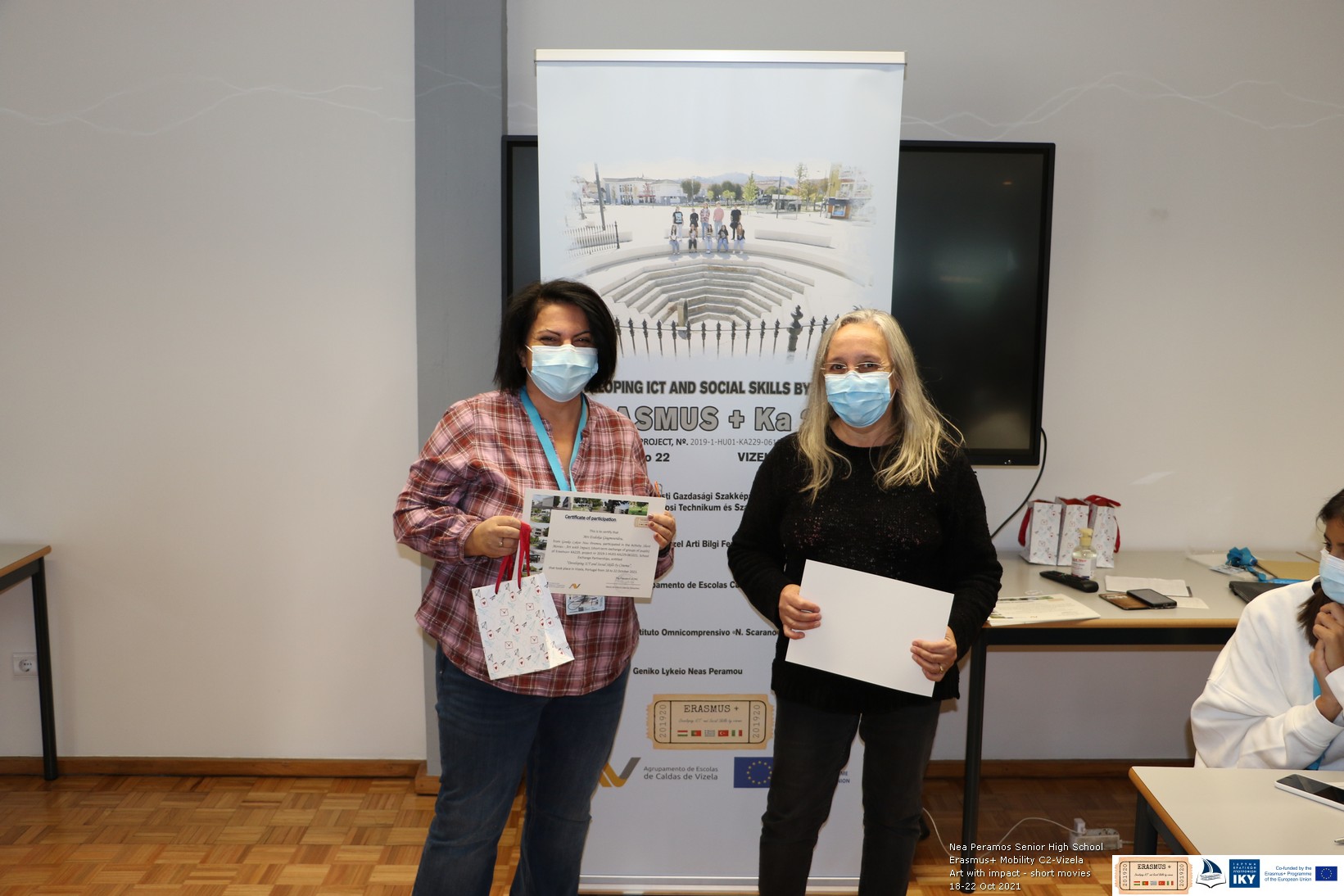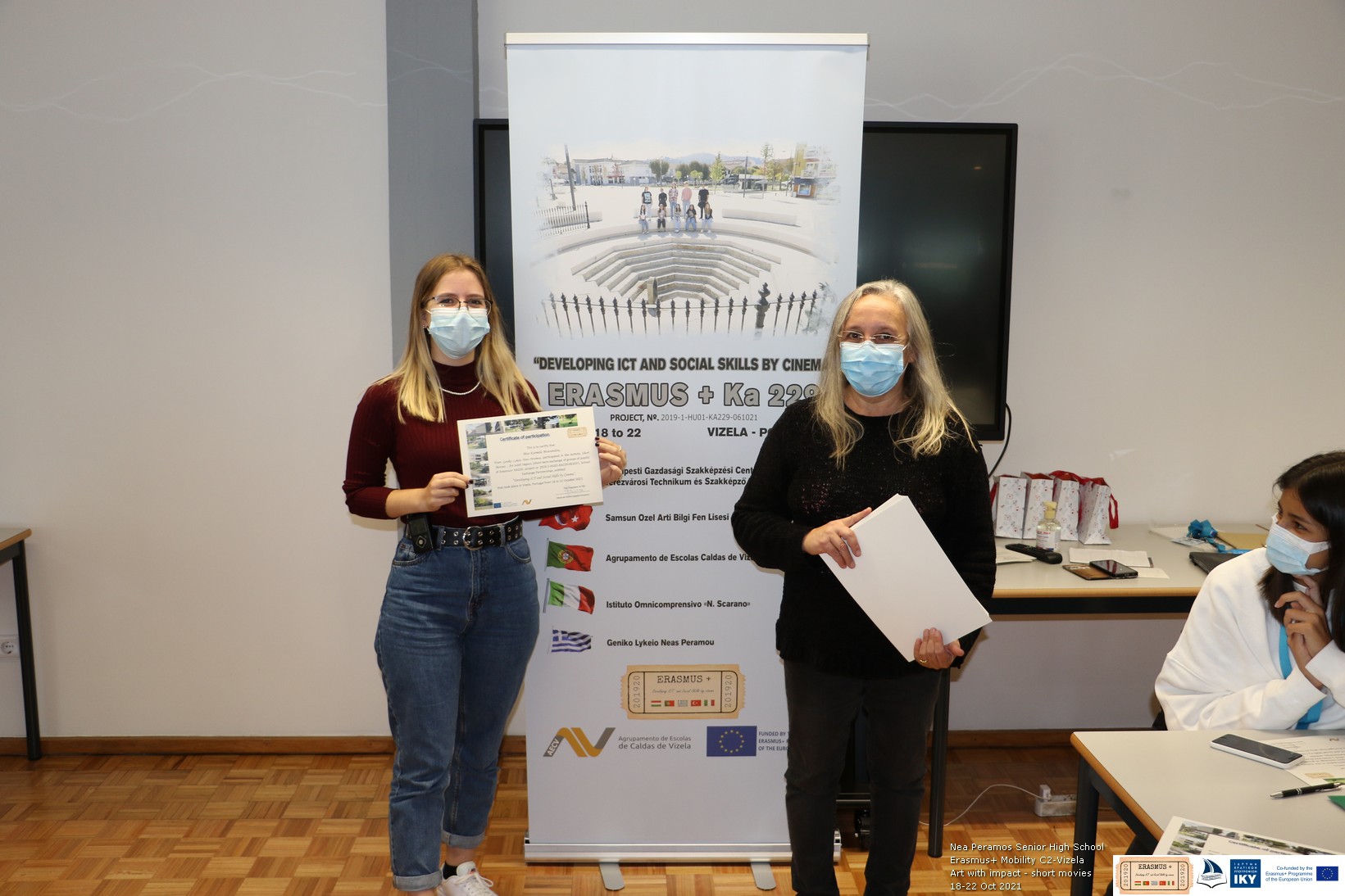 Το ένα από τα δύο προγράματα 2019-1-HU01-KA229-061021 έχει στόχο να αναπτύξει τις ψηφιακές και κοινωνικές δεξιότητες στα παιδιά με την ενασχόλησή τους με τον κινηματογράφο (" Developing ICT and social skills by cinema"). Στα πλαίσια αυτού του προγράμματος πραγματοποιήθηκε η πρώτη «φυσική» κινητικότητα εν μέσω πανδημίας. Οι καθηγητές κ. Πηγαδάς Βασίλειος, καθηγητής πληροφορικής και η κ. Γιαγμουρίδου Ευδοκία, φιλόλογος και οι μαθήτριες Στράντζα Φαίδρα, Μουρατίδου Καρμέλα, Κότσι Αρμπιόνα, Χύσα Ελεάνα και Ιωαννίδου Χριστίνα Νεκταρία μετακινήθηκαν στη πόλη Βιζέλα της Πορτογαλίας ύστερα από πρόσκληση του σχολείου Agrupamento des Escolas Caldas de Vizela στις 17-24/ 10/2021.