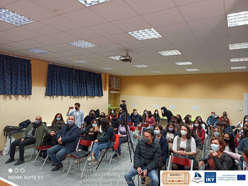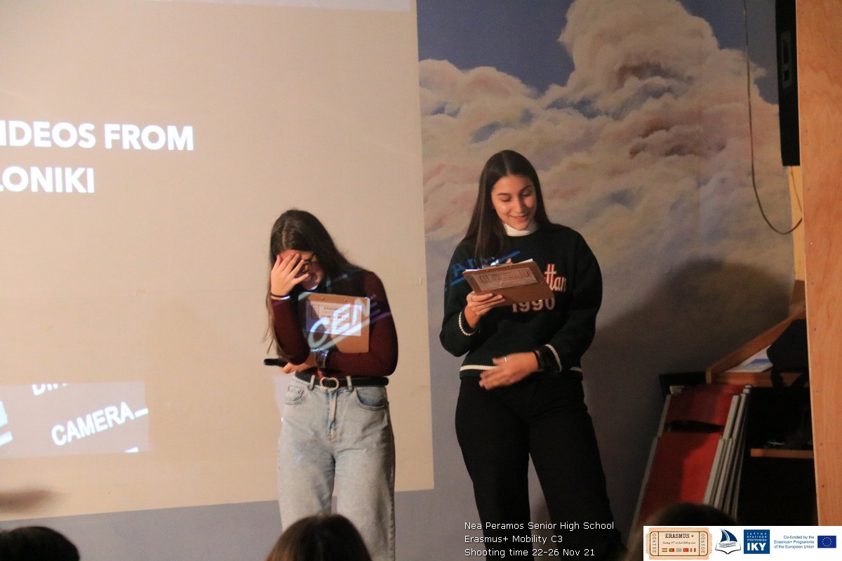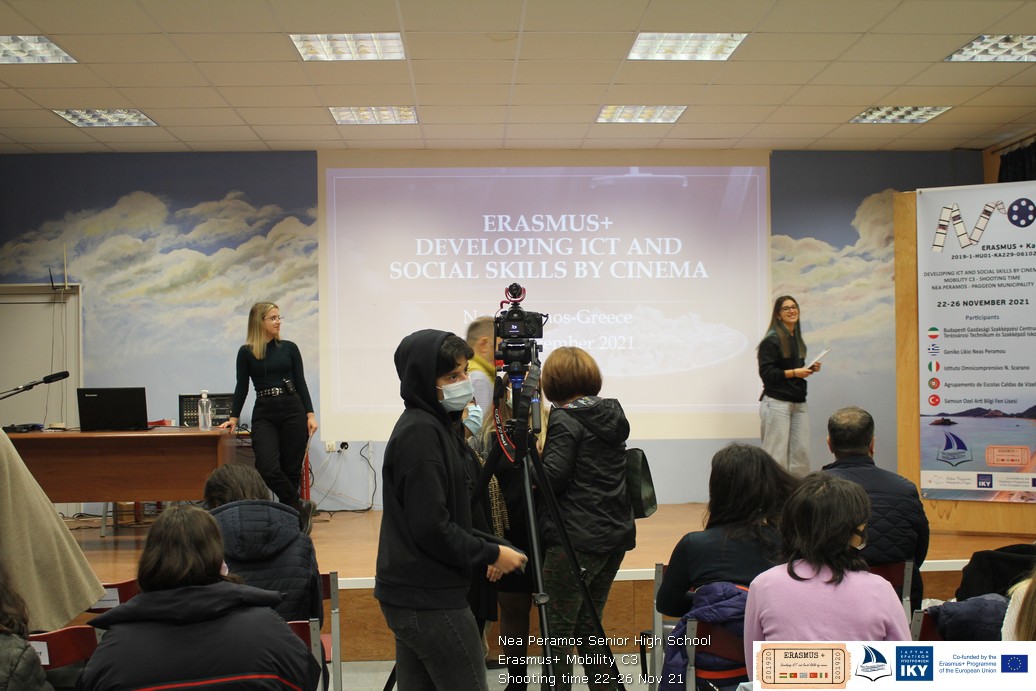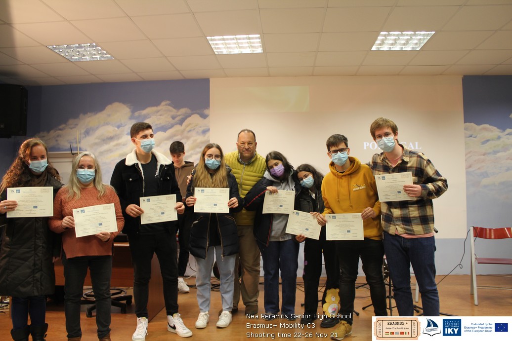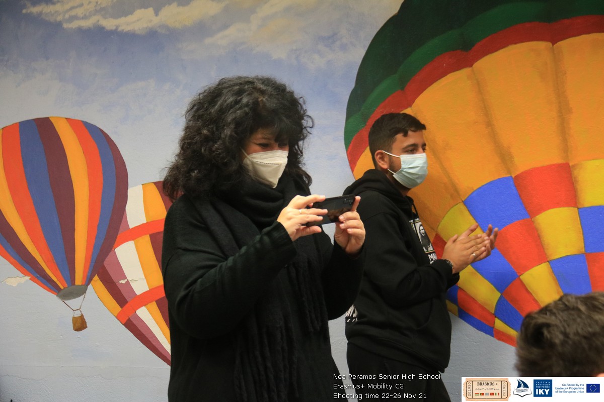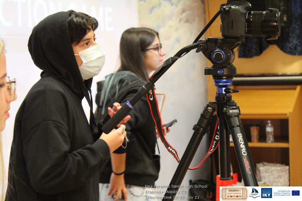 Μετά την κινητικότητα στην Πορτογαλία τον Οκτώβρη του 2021, οι ομάδες, έχοντας ετοιμάσει στις χώρες τους τα σενάρια (storyboard) των ταινιών τους, προχωρούν σε εργαστήρια shooting, λήψης και κινηματογράφησης, στο Λύκειο της Ν.Περάμου, κατά το διάστημα 22-26 Νοεμβρίου, που φιλοξενήθηκαν από τους Έλληνες εταίρους.