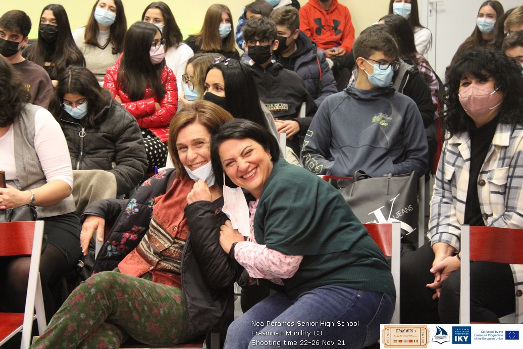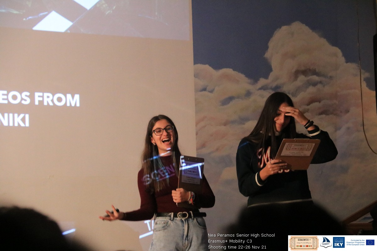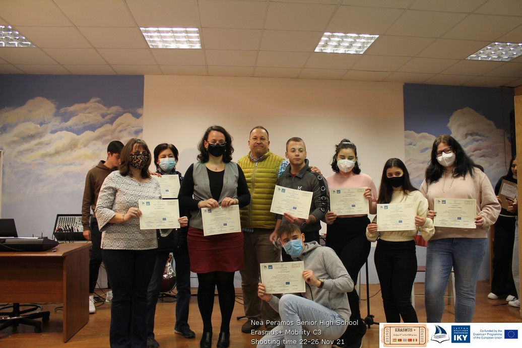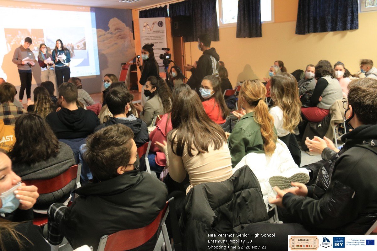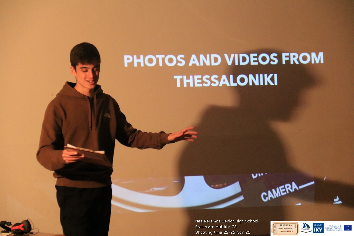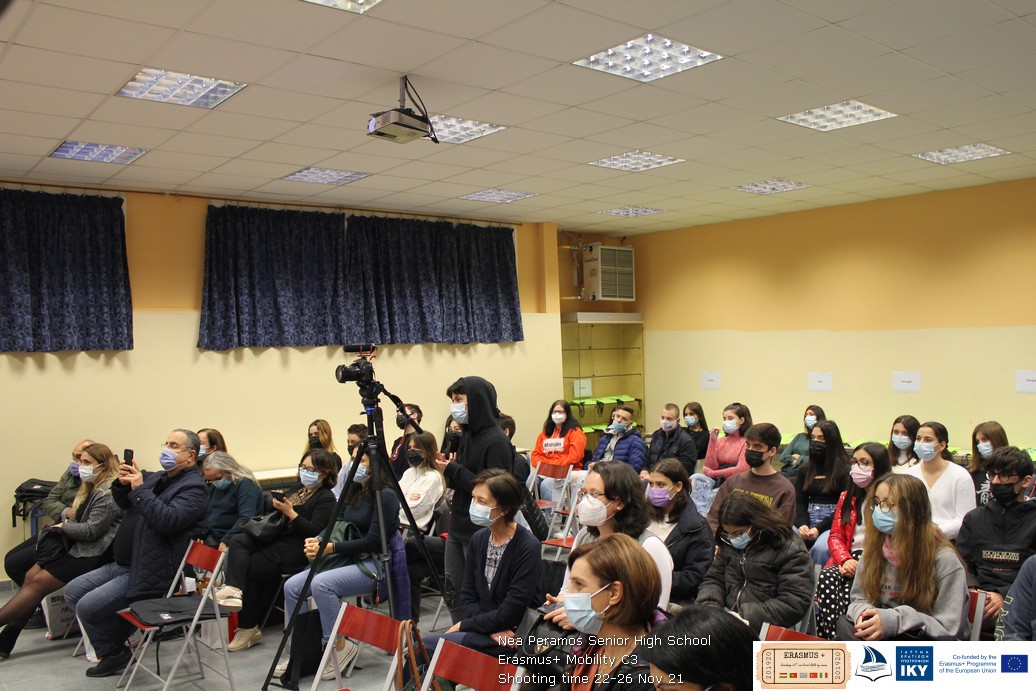 Μετά την κινητικότητα στην Πορτογαλία τον Οκτώβρη του 2021, οι ομάδες, έχοντας ετοιμάσει στις χώρες τους τα σενάρια (storyboard) των ταινιών τους, προχωρούν σε εργαστήρια shooting, λήψης και κινηματογράφησης, στο Λύκειο της Ν.Περάμου, κατά το διάστημα 22-26 Νοεμβρίου, που φιλοξενήθηκαν από τους Έλληνες εταίρους.