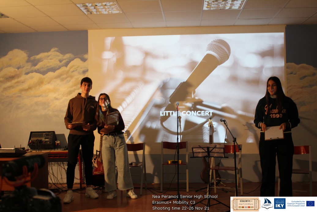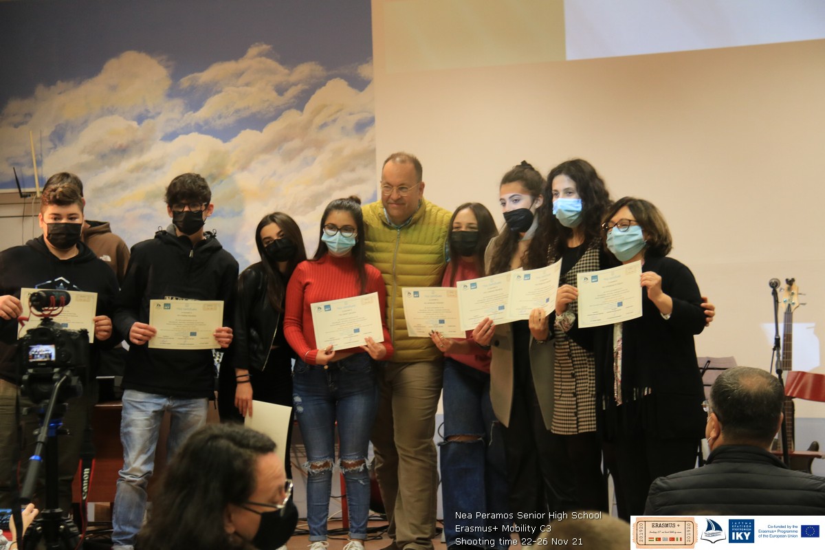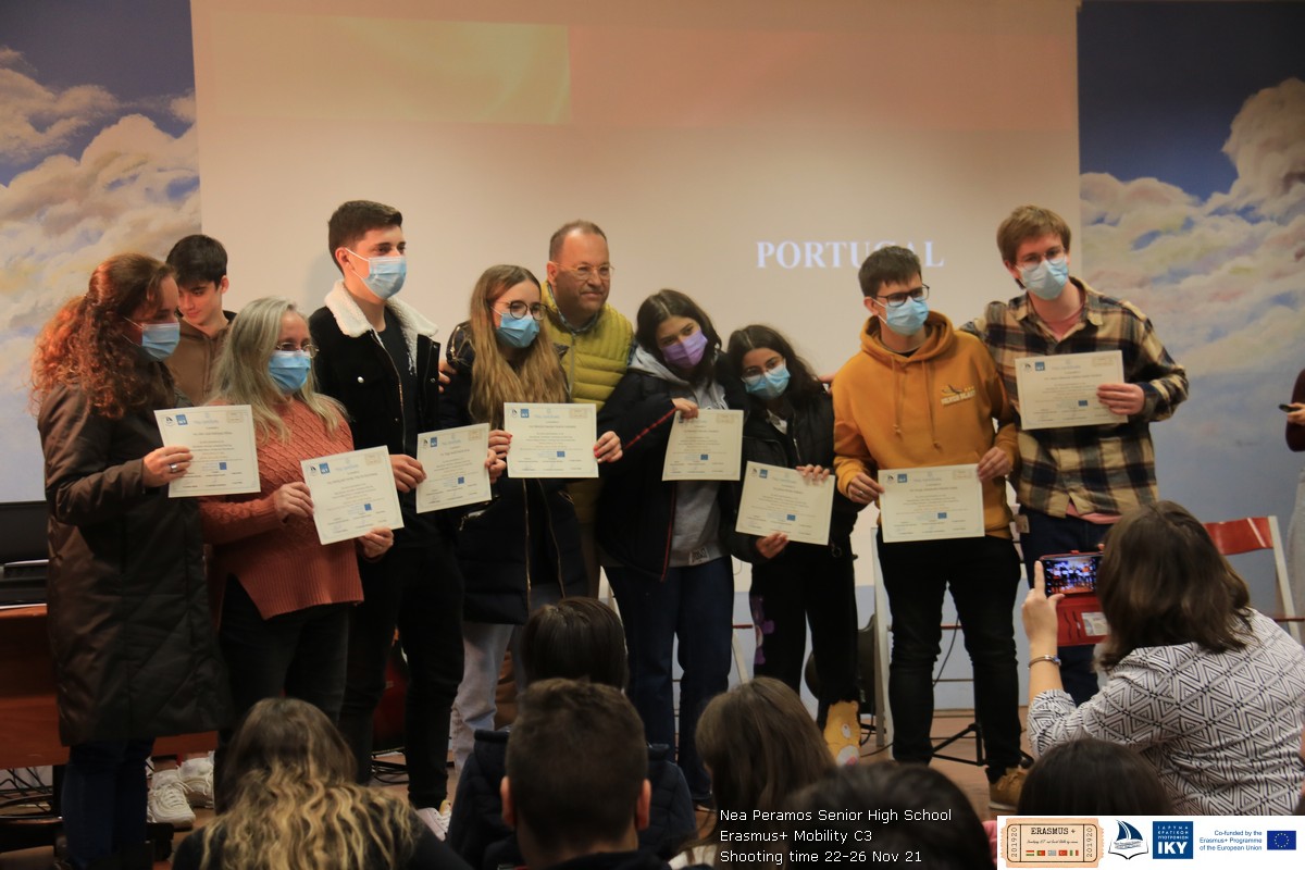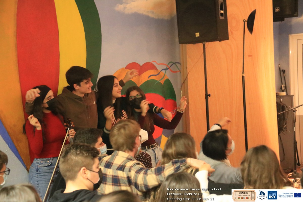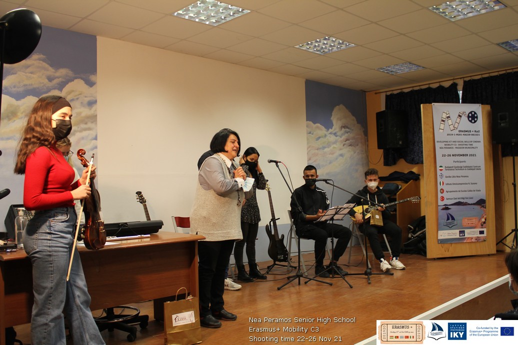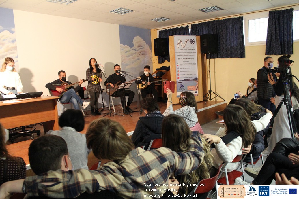 Μετά την κινητικότητα στην Πορτογαλία τον Οκτώβρη του 2021, οι ομάδες, έχοντας ετοιμάσει στις χώρες τους τα σενάρια (storyboard) των ταινιών τους, προχωρούν σε εργαστήρια shooting, λήψης και κινηματογράφησης, στο Λύκειο της Ν.Περάμου, κατά το διάστημα 22-26 Νοεμβρίου, που φιλοξενήθηκαν από τους Έλληνες εταίρους.