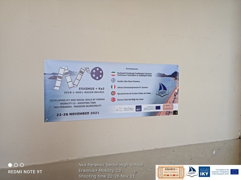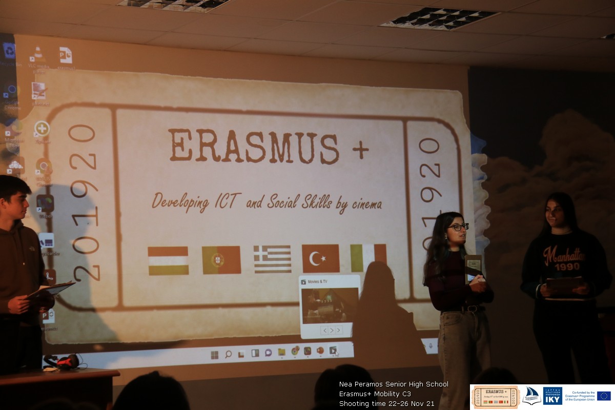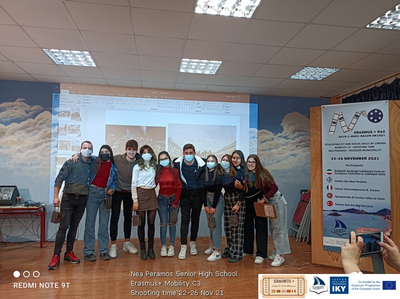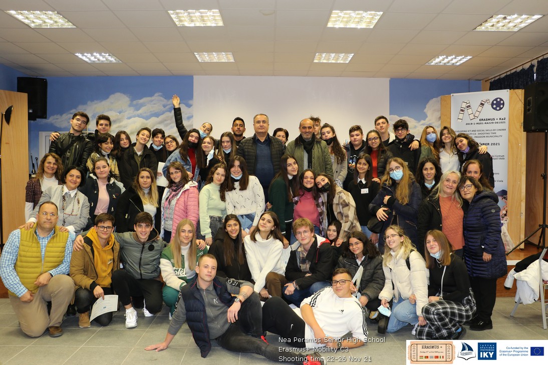 Το Γενικό Λύκειο Νέας Περάμου, μετά από ένα χρόνο αδράνειας λόγω του covid, δραστηριοποιείται ξανά στα προγράμματα Erasmus+. Η κινητοποίηση αφορά το πρόγραμμα με τίτλο «Developing ICT and social skills by cinema», το οποίο ξεκινήσαμε το 2019 μαζί με σχολεία της Ιταλίας, Πορτογαλίας, Τουρκίας και Ουγγαρίας, και έχει ως θέμα του την προβολή του κινηματογράφου ως μέσου ευαισθητοποίησης σε κοινωνικά θέματα.