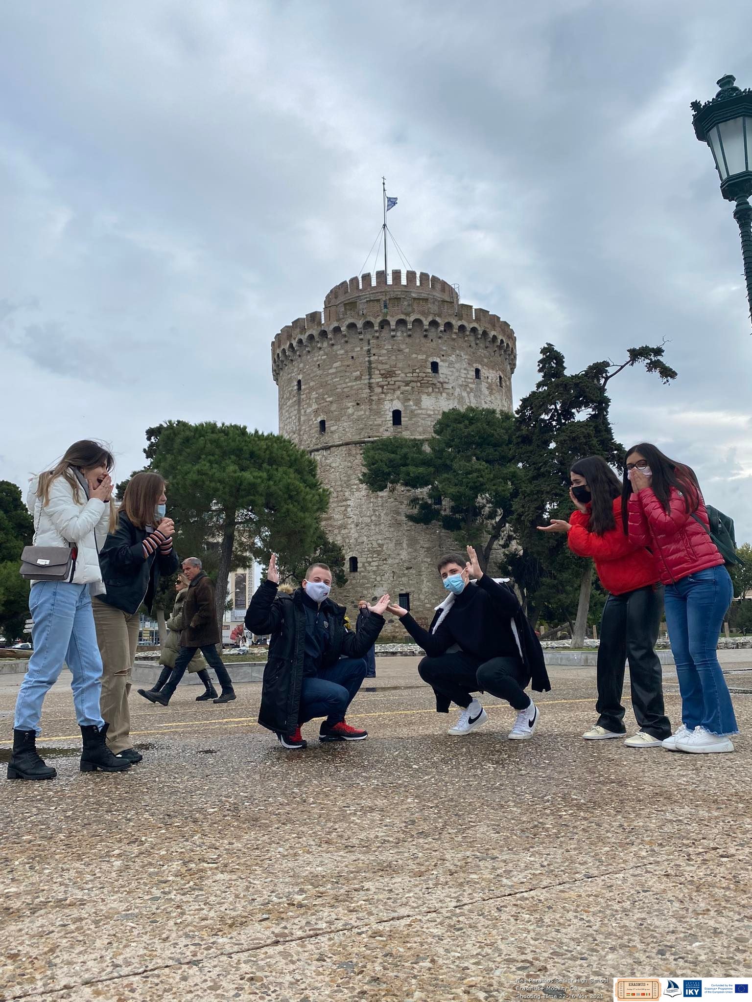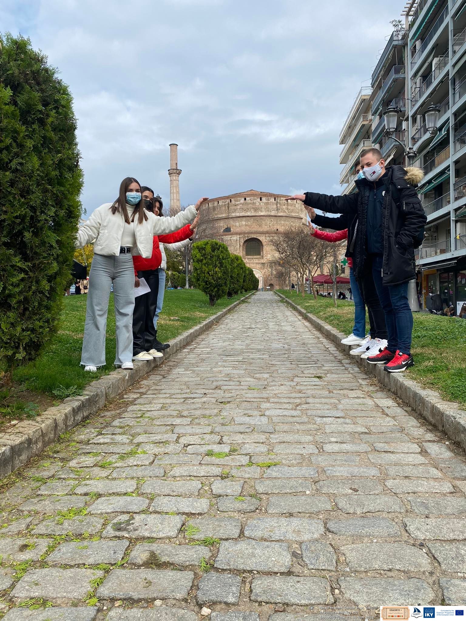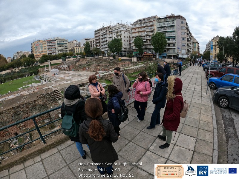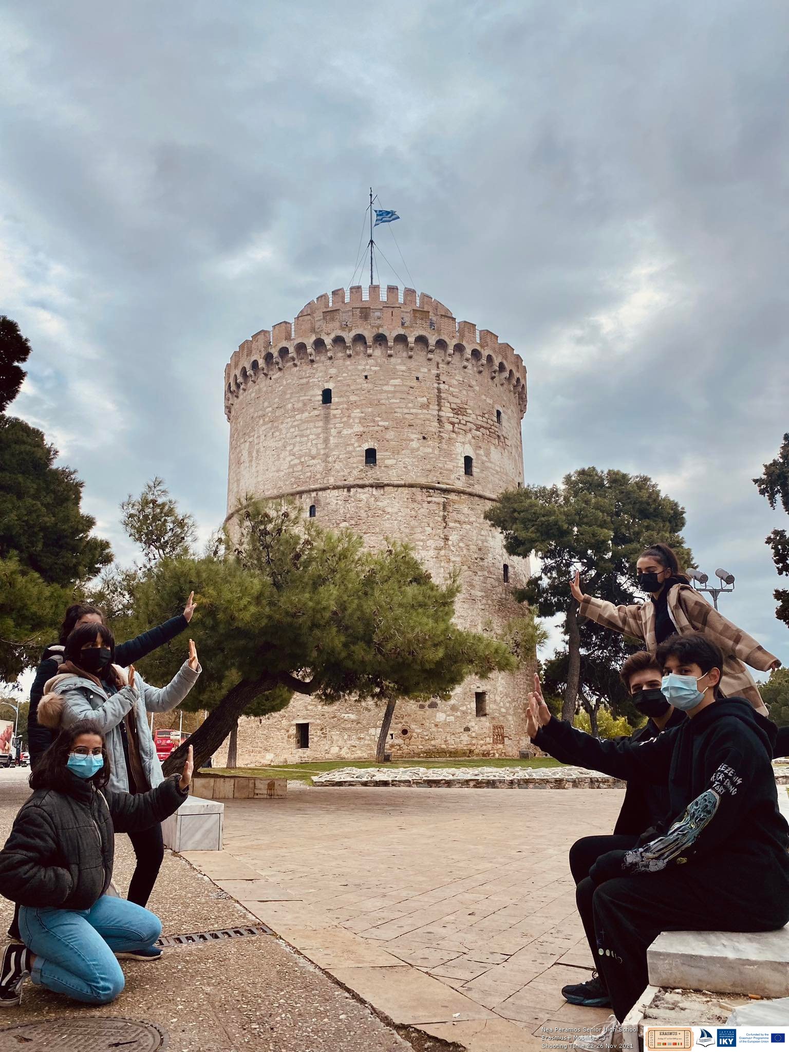Η κινηματογράφηση όμως δεν σταμάτησε μόνο στον νομό μας. Πραγματοποιήσαμε επίσκεψη στο Μουσείο Κινηματογράφου της Θεσσαλονίκης, όπου και εκεί μπροστά από τη θάλασσα τραβήξαμε σκηνές. Πολύ σημαντική στιγμή της επίσκεψής μας ήταν η ξενάγηση στο Μουσείο, και ιδιαίτερα η χρήση του Greenroom, για την παραγωγή ολιγόλεπτων διασκεδαστικών βίντεο με τους μαθητές, που καταδεικνύει την δυνατότητα του κινηματογράφου να παρουσιάζει τον κόσμο με την δική του «αλήθεια». Η ξενάγηση στην πόλη συνεχίστηκε στις βυζαντινορωμαϊκές αρχαιότητες.