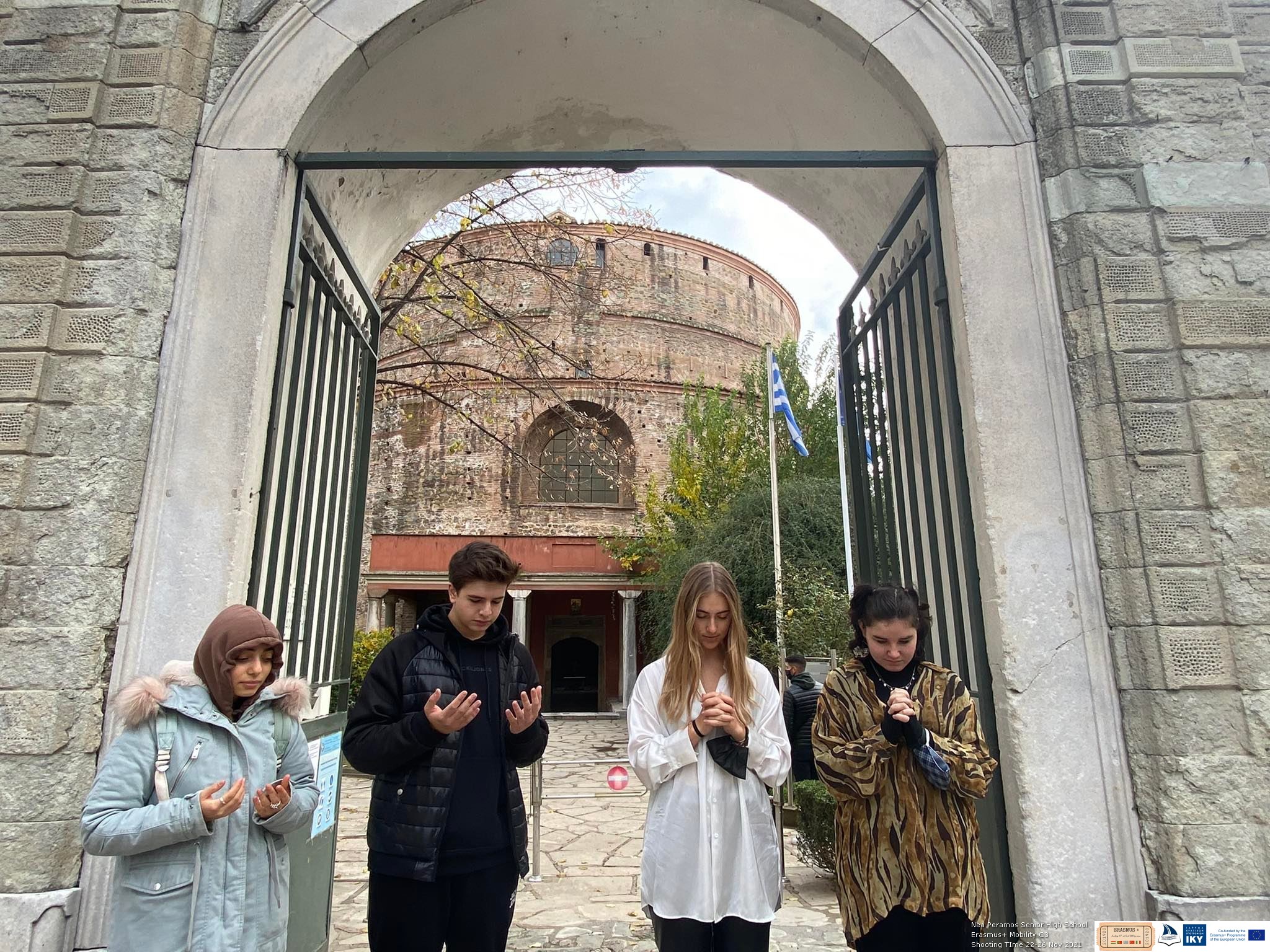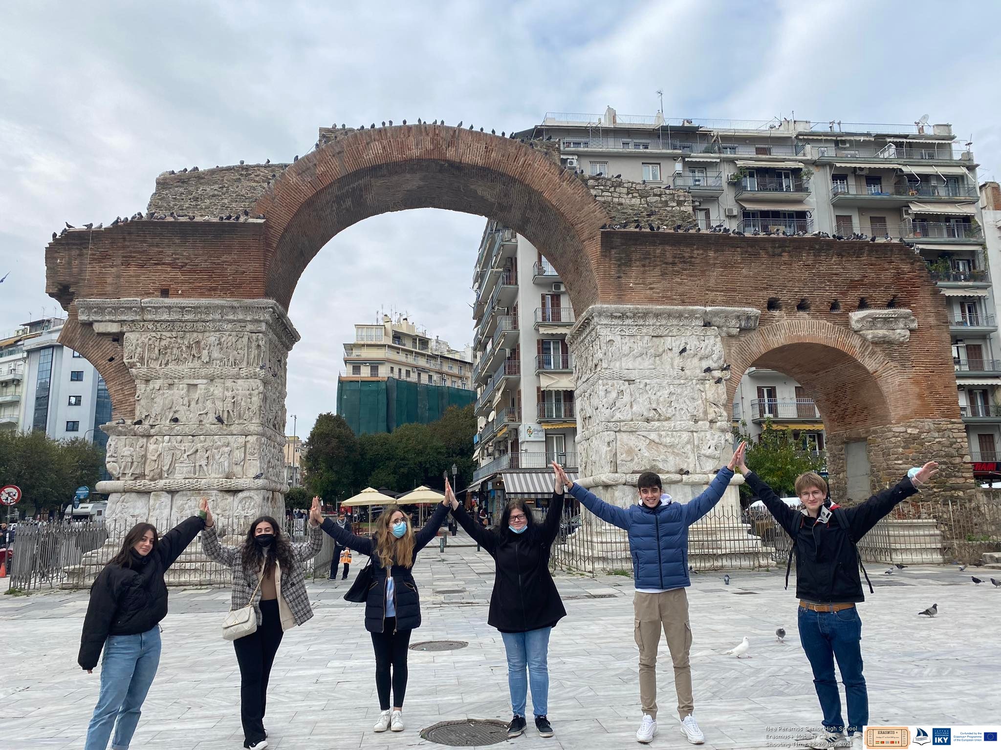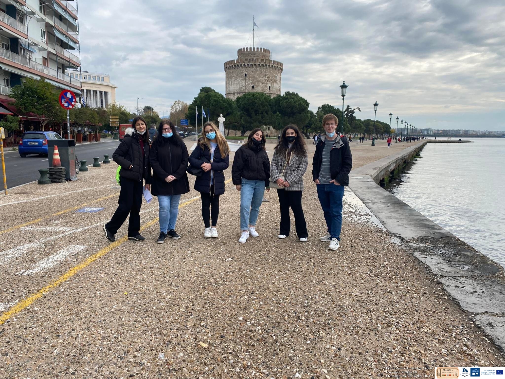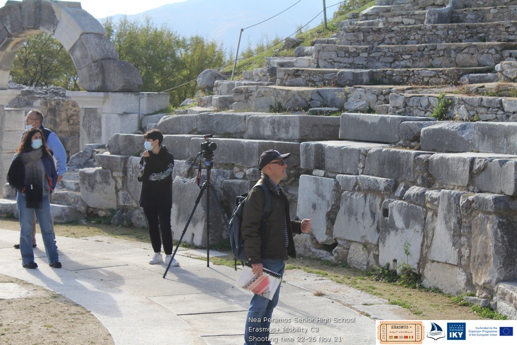 Η κινηματογράφηση όμως δεν σταμάτησε μόνο στον νομό μας. Πραγματοποιήσαμε επίσκεψη στο Μουσείο Κινηματογράφου της Θεσσαλονίκης, όπου και εκεί μπροστά από τη θάλασσα τραβήξαμε σκηνές. Πολύ σημαντική στιγμή της επίσκεψής μας ήταν η ξενάγηση στο Μουσείο, και ιδιαίτερα η χρήση του Greenroom, για την παραγωγή ολιγόλεπτων διασκεδαστικών βίντεο με τους μαθητές, που καταδεικνύει την δυνατότητα του κινηματογράφου να παρουσιάζει τον κόσμο με την δική του «αλήθεια». Η ξενάγηση στην πόλη συνεχίστηκε στις βυζαντινορωμαϊκές αρχαιότητες.