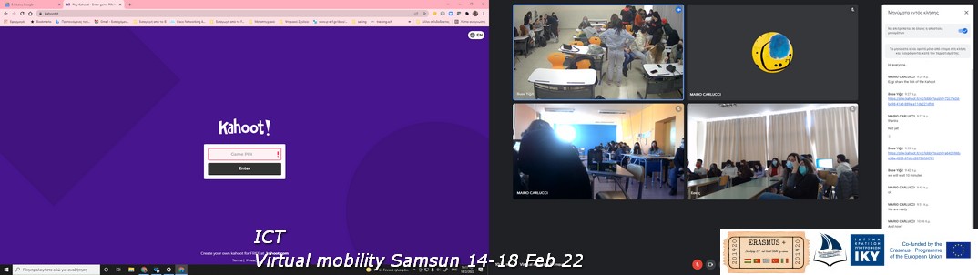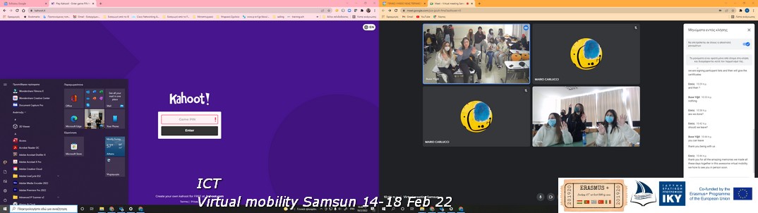 Η ομάδα Erasmus του Γενικού Λυκείου Ν.Περάμου συμμετείχε σε εικονική κινητικότητα στην Σαμψούντα, την εβδομάδα από 14 έως 18 Φεβρουαρίου 2022. Στην κινητικότητα αυτή συμμετείχαν διά ζώσης τα σχολεία της Σαμψούντας, της Ουγγαρίας και της Πορτογαλίας. Ενώ είχε διαδικτυακή συμμετοχή η Ελλάδα και η Ιταλία, οι οποίες αποφασίσαμε να μην παρευρεθούμε στην Σαμψούντα, λόγω των έκτακτων μέτρων ασφαλείας που ισχύουν εξαιτίας του covid, ειδικά σε χώρες εκτός Σένγκεν, όπως είναι η Τουρκία.